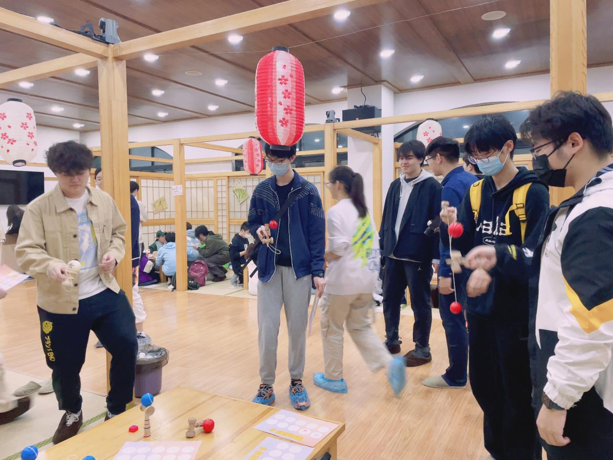 日语系主任刘尔瑟老师和日本外教榎園珠美老师也来到活动现场,和同学们一起参与了各个摊位的小游戏。