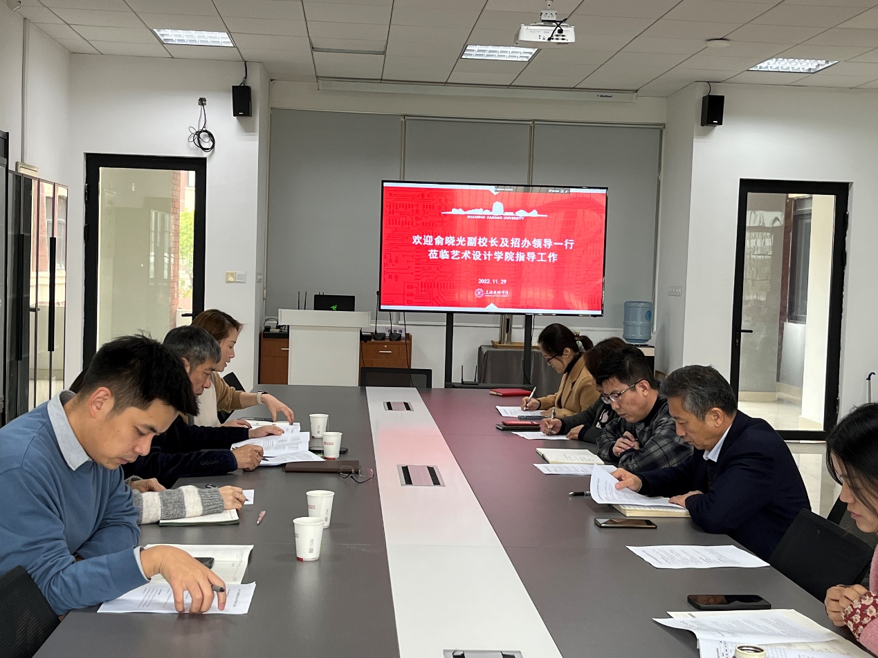11月29日上午,副校长俞晓光、招生办主任张磊一行赴艺术设计学院调研招生工作。院长葛洪波、党总支书记周智明、副院长汤美娜,院办主任及系主任参加会议。