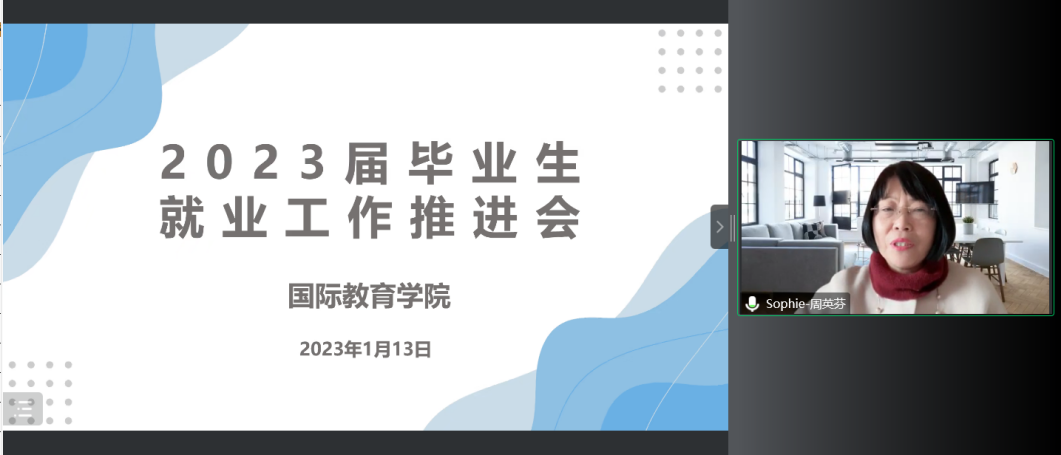 1月13日上午,国际教育学院召开2023届就业工作推进会。梁月泉院长、周英芬书记、刘潇滢副院长、高祺副书记出席,院办主任和23届毕业班辅导员参加,会议由高祺副书记主持。