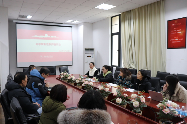 2月23日,商学院召开新进教师座谈会。商学院院长高健、党委书记刘爱香,副院长尹卫华及新进教师参加。