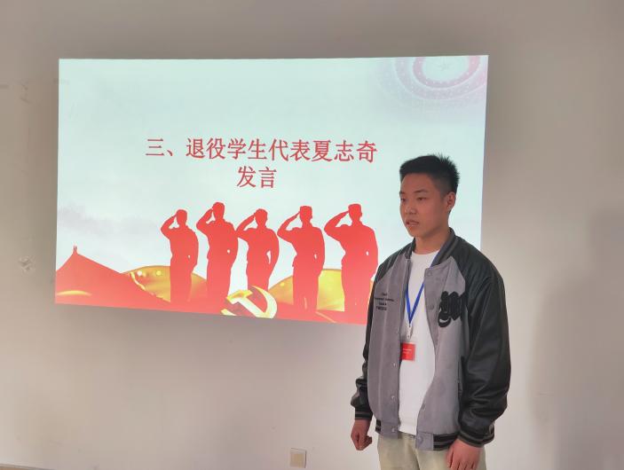 退役士兵代表夏志奇说到:“我要感谢学校、学院领导和各个老师对我的付出,回校之后要为学院建设增添一份力量。”