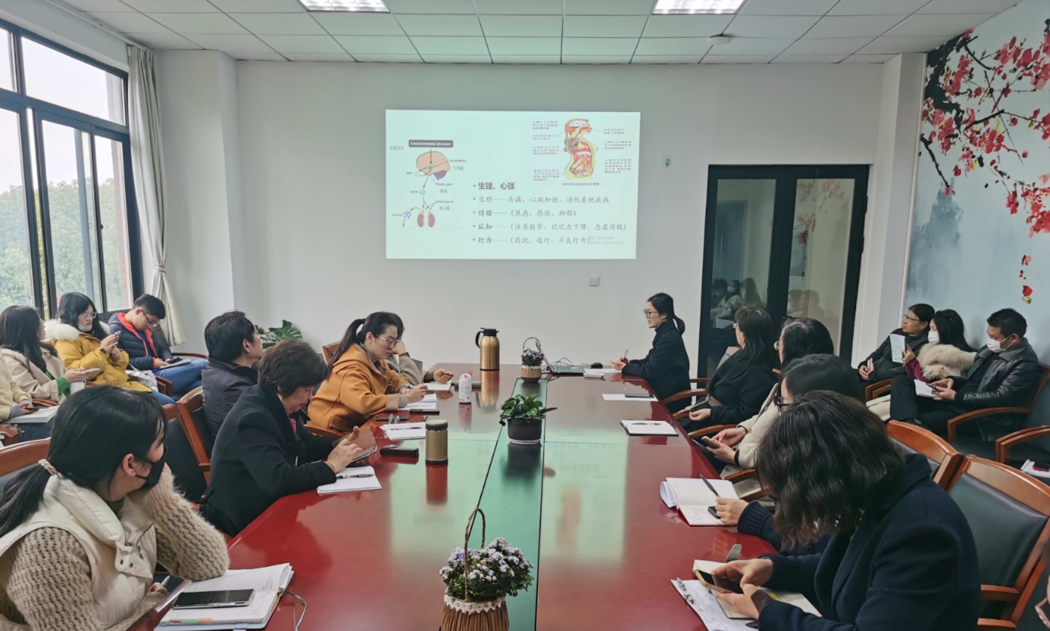 做有深度的教研,行有温度的教学。2023年3月23日下午,健康管理学院在247会议室开展教研交流活动,本次教研活动由院长助理朱兴敏老师主持,全院教职工参加。此次会议除了常规的教学研讨,还安排辅导员朱丽丽老师为大家分享《艺术疗法》的魅力。