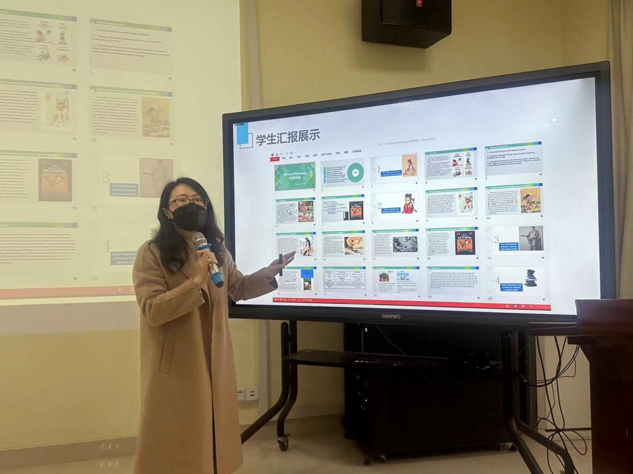 大学英语教师党支部刘海洋作为优秀党员获奖教师代表进行了课程思政建设经验分享。她说到,《英语听说1、2》“课程思政”旨在提高学生英语听说水平、强化学生实际语言运用能力的同时,进行价值引领,加强学生中国文化自信的培养。教师应当结合“感恩、回报、爱心、责任”校训和“应用性”专业人才培养要求,设计实施了“三观育人+三益实践”教学模式,从宏观、中观、微观三个层面入手选取思政元素,通过“扩知识、练技能、树价值”的“三益”教学实践活动,实现课堂育人、立德树人。