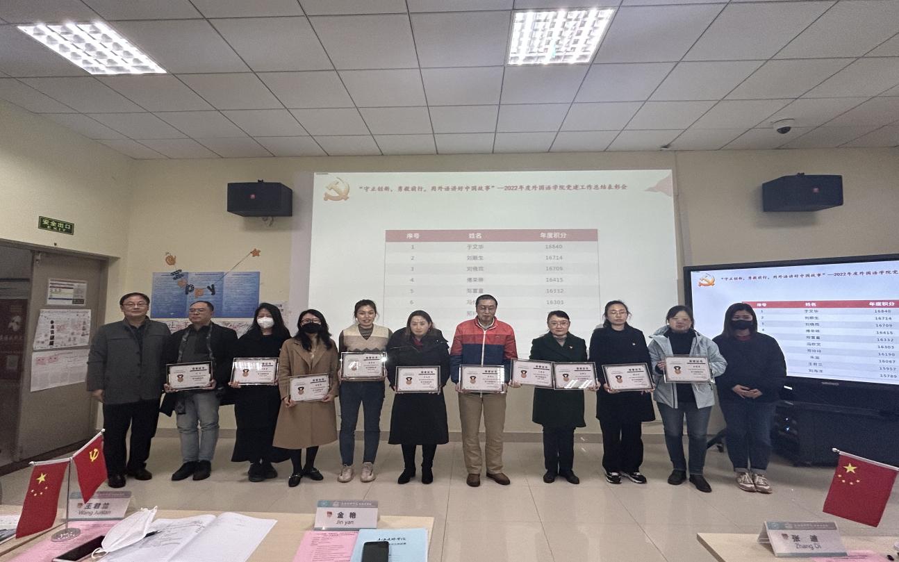 为树立典范,密切党组织和党员之间的联系,积极促进党员间相互交流、相互学习、共同进步的良好局面,充分发挥党员在学习、思想、业务、生活中的模范作用,外国语学院3月23日下午在129室召开“守正创新,勇毅前行,用外语讲好中国故事”2022年度党建工作总结表彰会。党委书记杜鹃、副书记伊莉、全国标杆支部机电学院教师党支部书记张迪,以及外国语学院全体教师党员出席了会议。