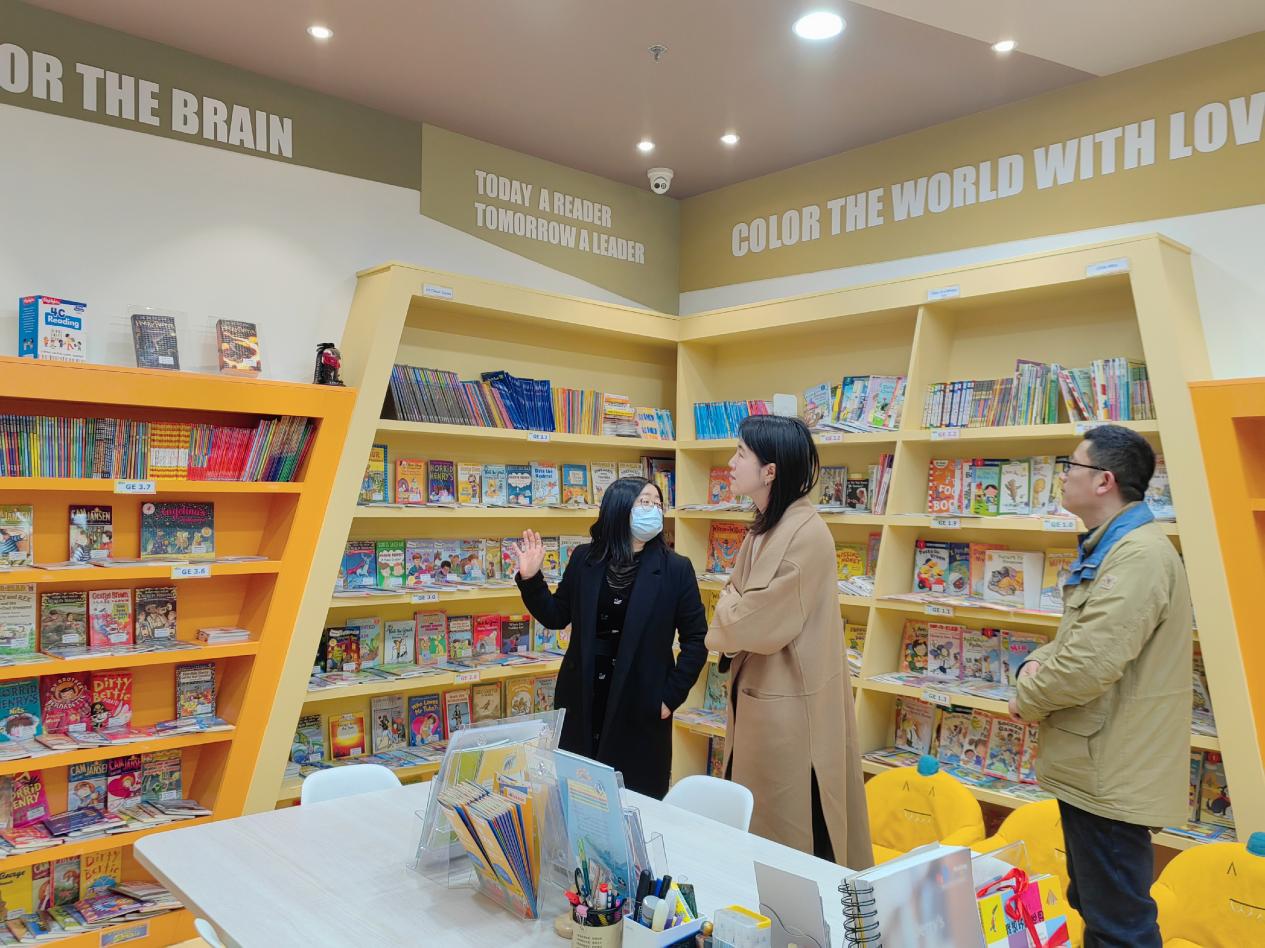 杜鹃书记向企业介绍了我院的基本情况,重点介绍了英语专业设置情况、人才培养模式。她表示,学院英语专业学生占比高,特别是英语教育方向的学生与吉的堡教育集团的招聘需求匹配度较高,双方在深入了解的基础上,有机会可以通过产教融合让学生从“贴近企业”变成“融入企业”,推动应用型人才培养质量提高。林安洪主任针对企业的招聘需求、工作模式、校本教材进行了深入地了解考察。