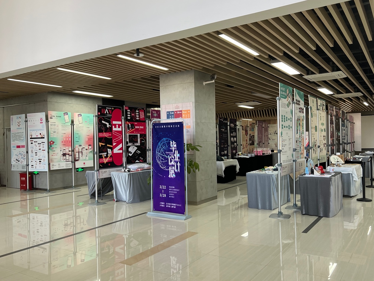 艺术设计学院数字媒体艺术专业2023届毕业设计展于3月22日开幕,展期一周。展览分成两个展厅,分别在艺术学院展厅及图书馆中庭。院长、系主任、专业教师及企业代表参加了开幕式并为活动致辞。会后,师生共同参加了观展。