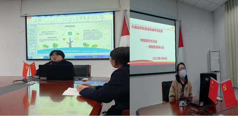 按照外国语学院党委“一支部一特色”的要求和部署,英语系教师党支部于4月6日下午在外语楼229室召开专题组织生活会——“用外语讲好中国故事”课程思政研讨会,会议由支部书记王君兰老师主持,支部全体教师参加。