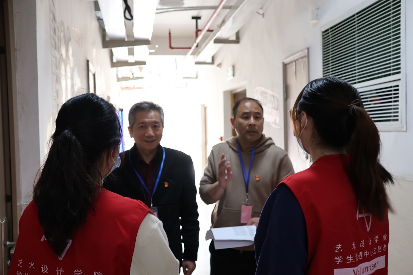 为加强学院对学生社区的管理,规范学生日常生活,督促学生养成良好的生活习惯,4月12日中午,艺术设计学院由党总支书记周智明老师带队,2019-2022级辅导员及全体学生党员和发展对象组成寝室走访小组,对南7和南11寝室安全、卫生等情况进行检查。