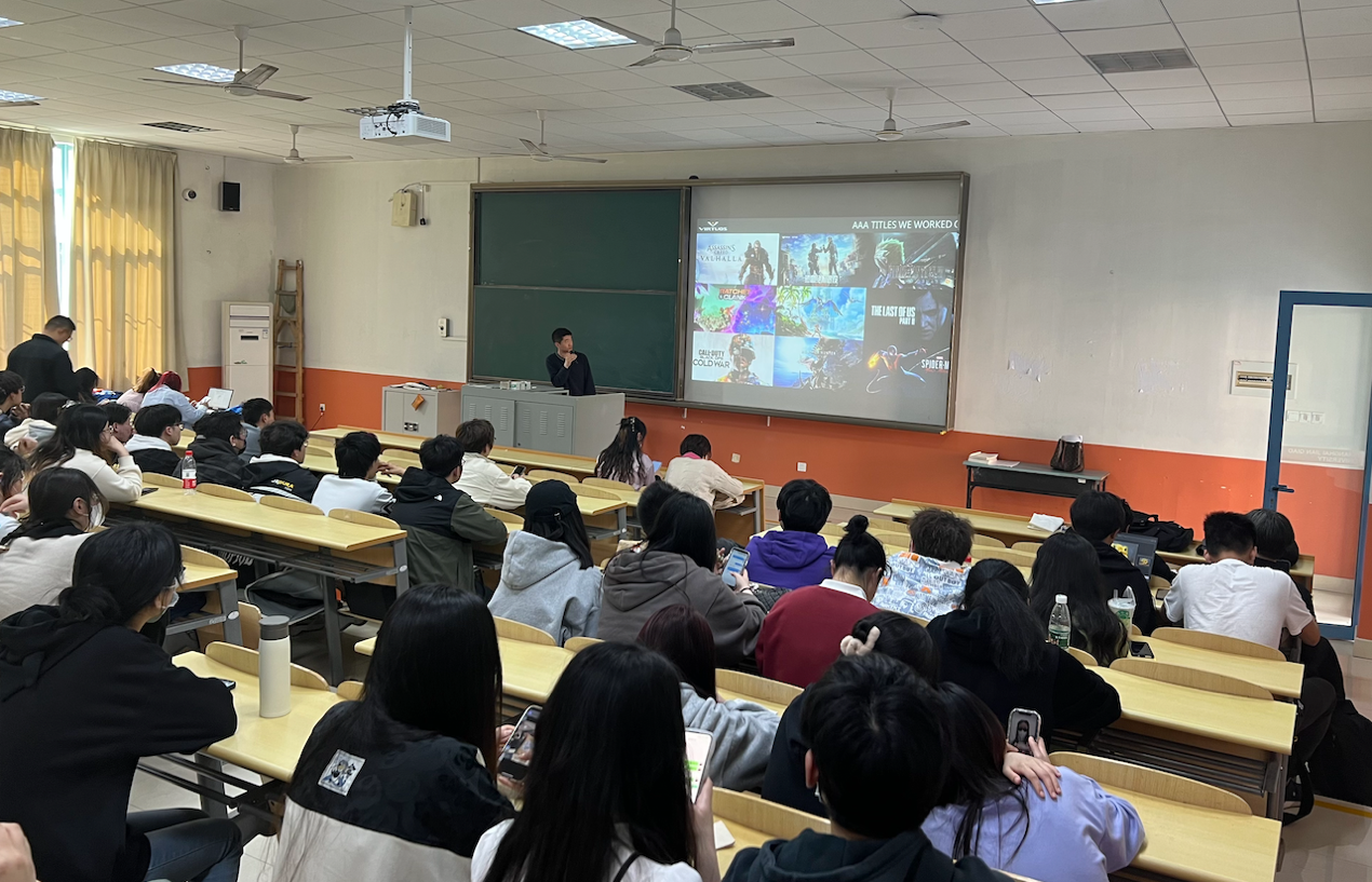 维塔士是业内领先的视频游戏和娱乐内容制作公司,成立于2004年,在新加坡、中国、越南、加拿大、法国、日本、 爱尔兰和美国都设有工作室和运营团队。多年来致力于AAA级主机游戏、PC游戏和手机游戏的开发与美术制作,其研发的游戏品质深受广大玩家的喜爱和好评。其代表作品包括《地平线》、《古墓丽影》、《FIFA》等。在活动中,维塔士游戏公司负责人为学生们详细介绍了公司的发展历程、业务范围及公司文化等方面。同时,他们还分享了游戏行业的最新趋势及技术发展前景。此外,维塔士游戏公司的招聘负责人还向学生们介绍了公司的校企合作招聘计划及在招聘过程中所要求的技能和素质。众多学生对于企业招聘以及作品集要求提出了问题,负责人逐个给予了认真的解答。