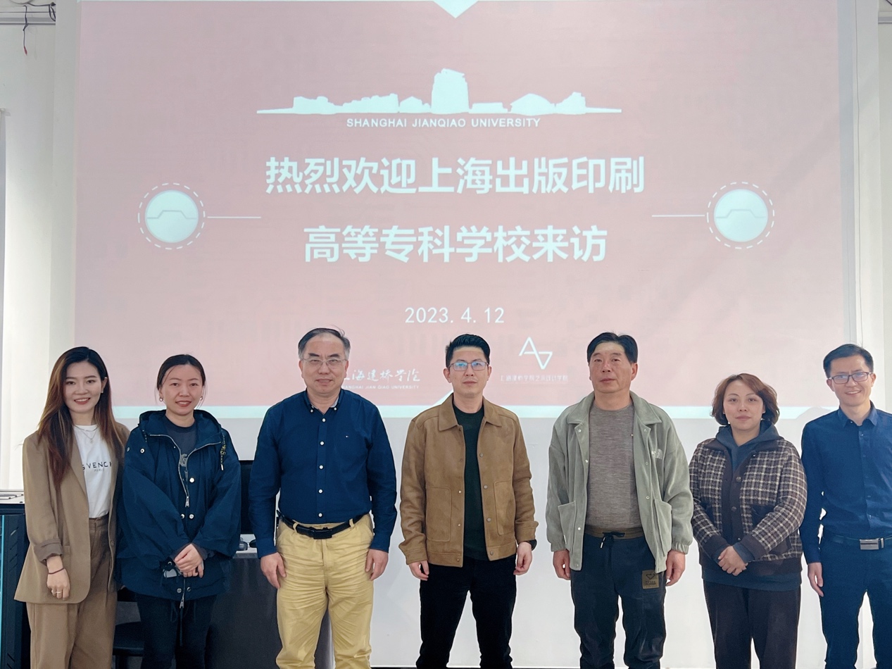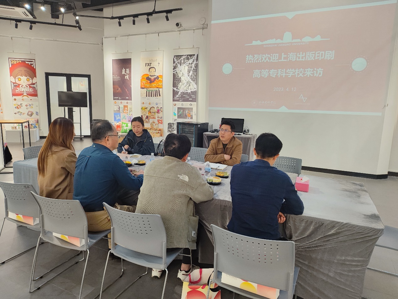 4月12日下午,上海出版印刷高等专科学校现代传媒学院常务副院长王正友一行来艺术设计学院调研。院长葛洪波、副院长汤美娜及数字媒体艺术系主任宋丹与来宾座谈。
