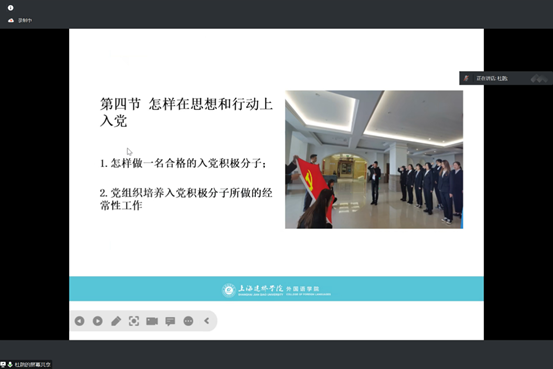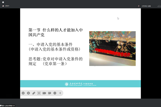2023年4月5日,外国语学院进行了第24期入党积极分子培训班专题党课第一讲《入党的条件和发展的标准》。本次专题党课由学院党委书记杜鹃作为主讲人,她分别从“什么样的人才能加入中国共产党”“共产党员的基本标准”“党员的权利和义务”“怎样在思想和行动上入党”和“发展党员的方针和原则”五个方面为学员们进行讲解。