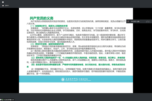 随后,杜书记为学员们讲解了共产党员的基本标准与党员的权利和义务。杜书记告诫学员们身为入党积极分子虽然还未入党的门,但要先做党的人,要学习了解党员义务,在学习、思想和工作等方面起到带头作用、桥梁作用、骨干作用,将为人民服务的意识放心头,铭记党员的宗旨。