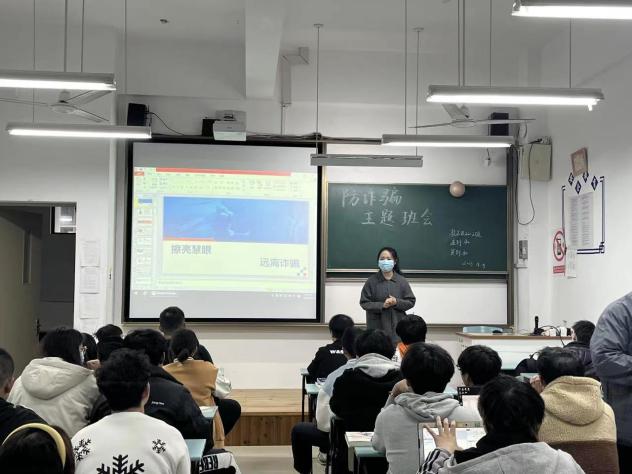 随后,各班级分别开展了防诈骗主题班会,此次班会警示性强、教育性强、实用性强,学生了解了诈骗危害和主要手段,增强了学生的自我防范意识和自我保护意识,并掌握防诈骗的基本方式。