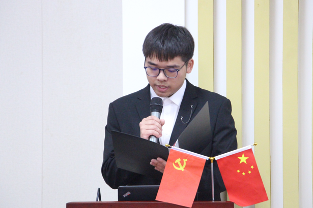 接着,由张嘉皓同学代表往期中党学员发言。他表示学员们应当认真学习、深入贯彻落实党的理论知识,在思想上高度重视,在生活中严以律己,以身作则,努力发挥先锋模范作用,真正做到“未进党的门,先做党的人”。