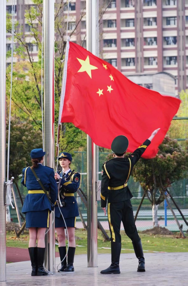 为进一步学习贯彻党的二十大精神,弘扬爱国主义精神,传承中华民族的优良传统,增进同学们热爱祖国、热爱人民、热爱中华民族的感情,使国教学子更加明确自己身上肩负的历史责任和庄严使命。4月17日清晨,国际教育学院开展了“弘扬伟大建党精神,踔厉奋发,勇毅前行”为主题的升旗仪式。学院党总支书记周英芬、副书记高祺、全体辅导员及学生参加。