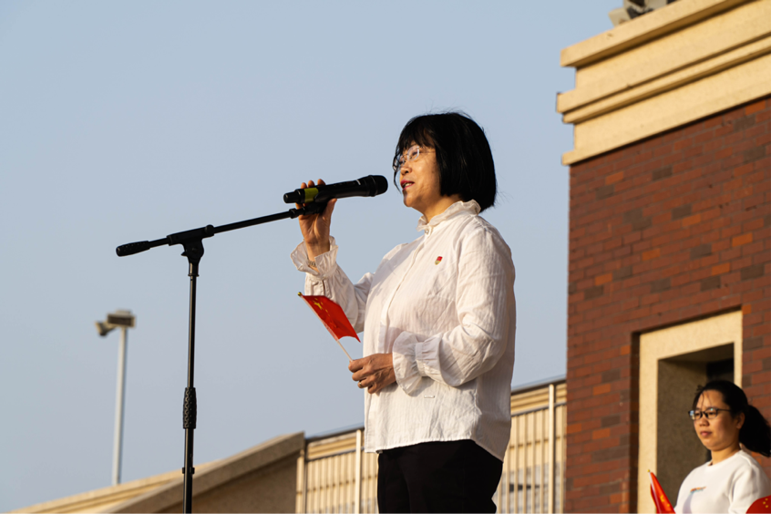 清晨六点十五,升国旗仪式正式开始。国旗护卫队的同学们护送鲜艳的五星红旗进场,在全体师生的注目礼下,五星红旗冉冉升起,象征着祖国崛起和强盛的民族气概,同时也激励着每一位国教学子要勇敢担当,迎难而上,用青春和汗水书写自己的人生篇章。