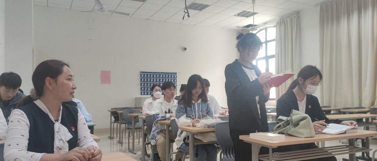 各位预备党员针对理想和纪律发表自己的看法,结合自己的学习与工作谈自己的切身感受。柯翔祯同学谈到,“作为预备党员更要时刻牢记党纪,不断学习六项纪律,俗话说‘不以规矩,不能成方圆’,无论是在校内还是校外都要遵纪守法,处处起到模范带头作用。”郑文华同学说到,“要遵纪守法,常怀敬畏之心,时刻保持学习的自律性。自己的实习工作与乡村振兴有关,要经常下乡与村民沟通,有时一个地方要去很多次,跟同事一起努力看着村庄一点点的改变,学生时代树立的理想有了进一步的升华,对党‘为人民服务’的宗旨也有了更深的理解。”