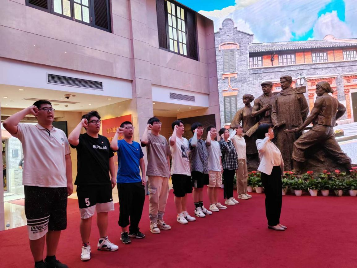中午师生党员们佩戴党徽,带着对多个“第一”的好奇和崇敬,有序走进中共二大纪念馆。走进宣誓大厅,我院党总支为新党员举行了入党宣誓仪式。面对鲜红的党旗和革命先烈雕塑,我院党总支书记周英芬带领全体新党员庄严宣誓。“我志愿加入中国共产党,拥护党的纲领,遵守党的章程……”,铿锵有力的誓言,提醒每位党员不忘入党初心,坚定理想信念,继续团结奋斗。