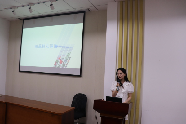 接着,新选聘的考研朋辈导师代表田蕊同学发言,她首先从自己的考研故事谈及学院上一届考研上岸学姐对其考研的帮助,由此引发她对担任考研朋辈导师意义的思考,以及担任考研朋辈导师后对工作开展的设想。