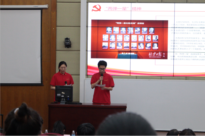 朱宸烨和陆言隽两位同学谈到“两弹一星”事业,是一项前无古人、后无来者的伟业。通过配音相关影视片段,深刻感悟到新时代青年要把个人理想与祖国的命运紧紧联系在一起,把个人的志向与民族的振兴紧紧联系在一起。