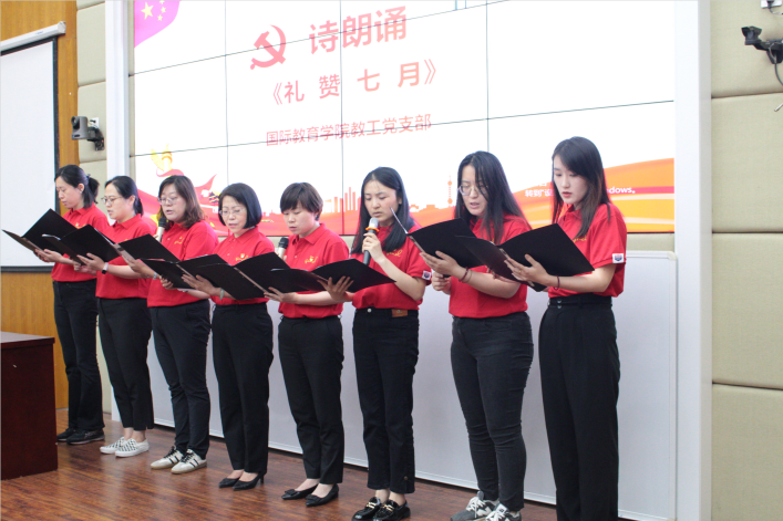 活动中,国际教育学院教工党支部带来了一首《礼赞七月》诗朗诵,以此迎接“七一”建党节的到来。教师们准备充分,感情充沛,带领在座全体师生党员及入党积极分子深刻感悟革命先辈精神,讴歌党的丰功伟绩。