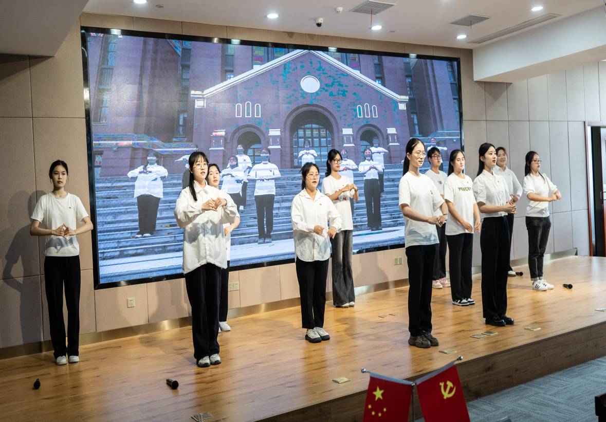 最后,在大学英语教师党支部全体党员带来的《走进新时代》中,活动圆满落幕。通过本次主题党日活动,外国语学院全体师生进一步加深了对党百年峥嵘岁月和光辉历程的认识,深刻感受了党的伟大思想,强化了建功新时代的使命感、责任感。外国语学院将牢牢把握主题教育“学思想、强党性、重实践、建新功”的总要求,凝聚广大师生,引导师生增强奋进新征程的信心和力量,以昂扬向上的精神状态团结奋斗、踔厉奋发,落实立德树人根本任务,推动学院教育教学高质量发展。