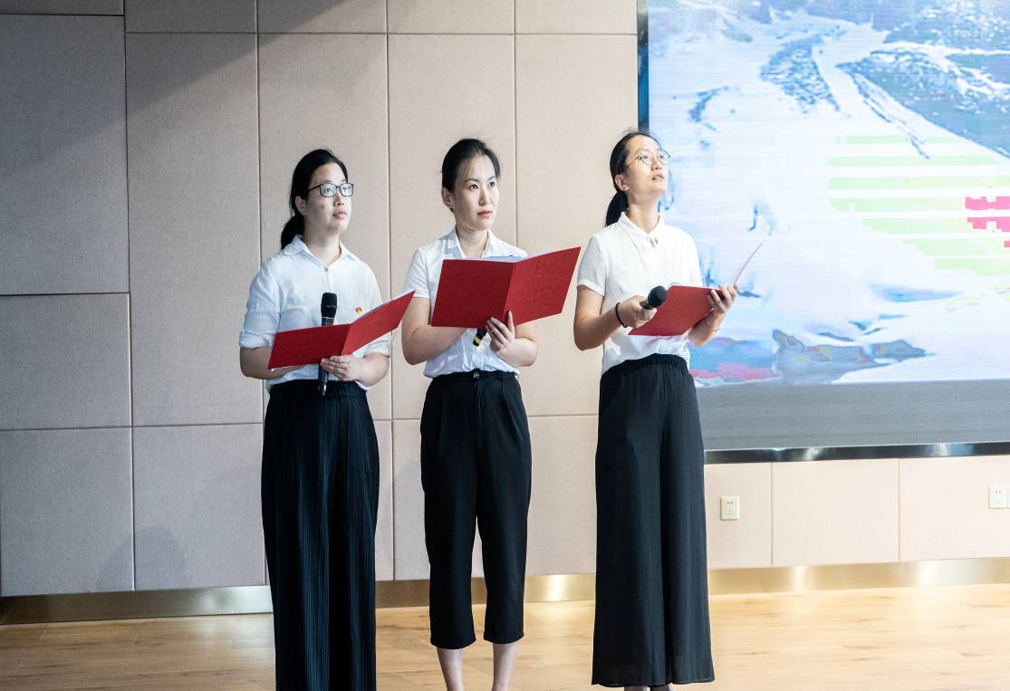 “中国特色社会主义是社会主义而不是其他什么主义,科学社会主义基本原则不能丢,丢了就不是社会主义······”杜鹃书记开篇朗诵了《习近平新时代中国特色社会主义思想的世界观和方法论专题摘编》中的选段,坚定的声音、入人心的分享让全体党员感受到了习近平新时代中国特色社会主义思想的力量,更让党员同志们深刻认识到为什么只有社会主义才能救中国,只有中国特色社会主义才能发展中国,从而带领大家坚定了道路自信、理论自信、制度自信、文化自信。