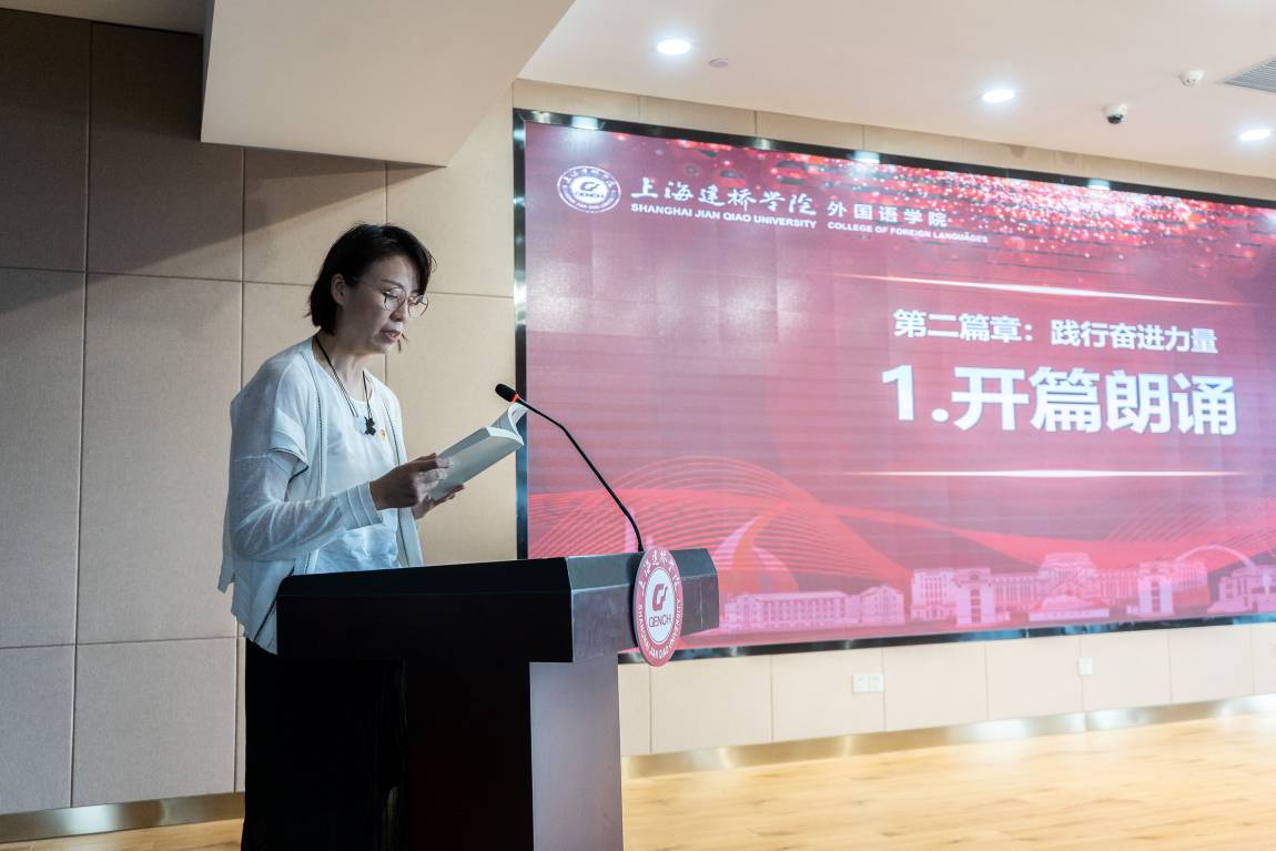 “增强中华文明传播力影响力。坚守中华文化立场,加快构建中国话语和中国叙事体系,讲好中国故事、传播好中国声音,展现可信、可爱、可敬的中国形象。”院长助理孔辉老师在《习近平新时代中国特色社会主义思想专题摘编》节选朗诵中提到,作为外语人,要用外语讲好中国故事,要把中国故事更多为国际社会和海外受众所认同,展现可亲、可敬、可爱的中国形象。