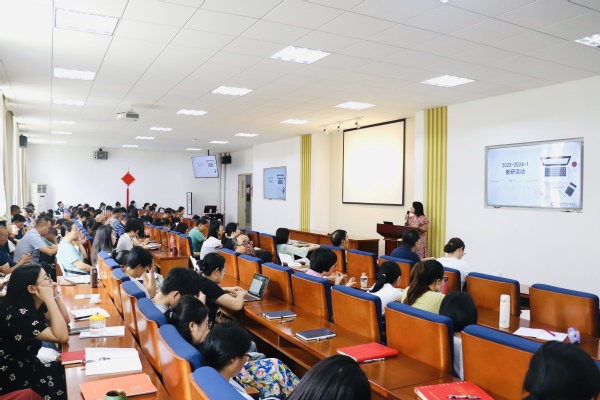 新思想,新征程,新学期,新起点。商学院为了更好地安排新学期的教育教学工作,9月1日组织召开新学期第一次教职工大会暨新学期首次教研活动。商学院党委书记刘爱香主持,商学院院长高健、副院长尹卫华以及学院百余位教职员工以崭新的精神面貌共同出席。