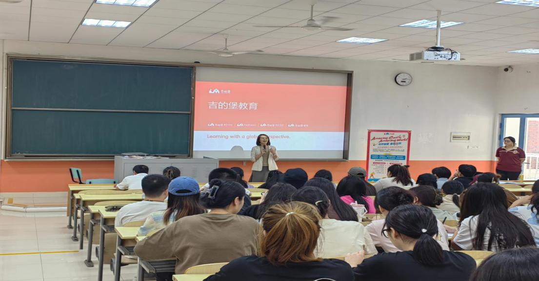 伊莉副书记首先对吉的堡教育集团的来访表示热烈欢迎,介绍了学院发展现状及学生的培养的特色。吉的堡教育集团的领导和英语系林主任商谈了校企合作的具体模式和内容。随后吉的堡集团的教务长林慧琪在三教120召开了吉的堡集团招聘宣讲会,2024届英语教育方向毕业生参会。宣讲会结束后部分毕业生在现场直接进行了实习面试。促进了学生与单位之间的交流,也为外国语学院学子今后的就业创造了更多的机会。