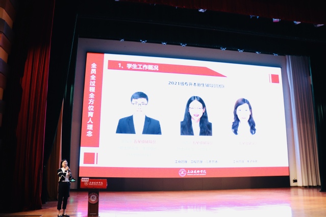 俞海燕副书记围绕“卓越建桥计划”、“八项核心能力”,着重强调学生应注重综合能力的提升。提到商学院秉持“三全育人”理念,注重学生思想行为建设、学风建设、第二课堂建设、学生干部工作建设等,通过培养学生党性意识,强化学雷锋德育建设,扎实做好学生党建工作及安全教育工作。让新生在了解商学院基础情况下,对未来两年的学习生活有了更加清晰的认识并有意识的进行学业规划。