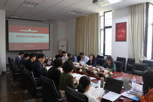 为提升学院教育教学工作的质量和水平,规范教材管理,保证教材选用质量,商学院认真开展教材选用、审核工作,严把教材质量关。日前,商学院组织召开系主任例会暨教材审核会议。商学院党委书记刘爱香、院长高健、教学副院长尹卫华以及各正副系主任、商学院教材审核委员会成员等悉数出席。会议由教学副院长尹卫华主持。