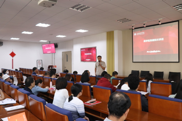 商学院办公室主任徐光硕具体介绍了专业导师“三位一体”实施方案,专业导师工作职责和要求等,并代表学院期望各位专业导师能通过这个模式激发学生对专业学习的兴趣,做学生的良师益友。