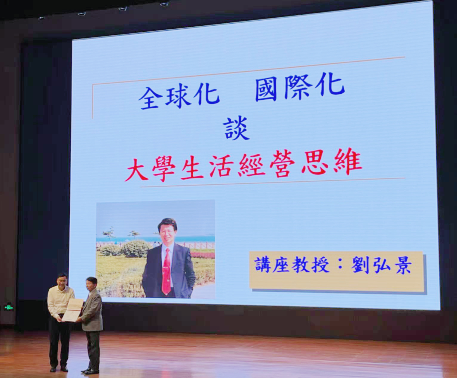 刘弘景教授围绕“自我介绍” “公司介绍” “如何在大学生活经营自己的思维”三方面内容,有深度、有广度地与同学们分享自己的人生经历与感悟,带来了深刻的心灵启迪。一张张关于世界名校的精彩照片逐一展示在大家面前后,刘教授巧妙引出全球化、国际化的主题,“大学之道”贯穿于刘教授的讲述之中,重点提出了当今世界性人才应具备以下五种能力,即跨文化认知和理解力,沟通协作力,全球议题解决力,自主学习和批判思考力,快速应变力。每一位同学都应该将此作为自己的发展标准,以在学习生活中达到新的高度。