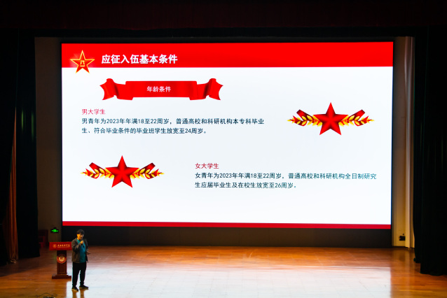 机电学院征兵负责人马世超老师也应邀为毕业生解读了征兵政策,鼓励大四学生携笔从戎,保家卫国。最后马秀娟老师强调了毕业生实习就业中的安全问题。