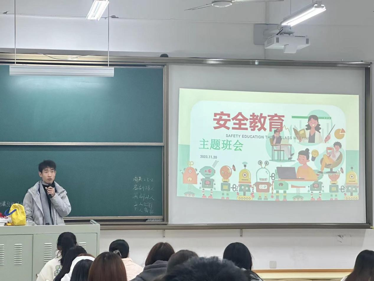 11月20日,职业技术学院2023级全体同学开展“大学生安全教育”主题班会。本次班会围绕网络安全、财产安全、寝室宿舍安全、心理安全等几个方面展开,帮助同学们进一步提高安全防范意识,加强自我安全保护。