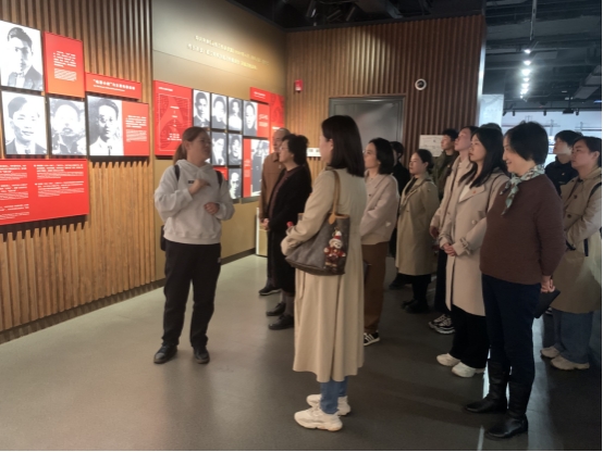 为进一步学习贯彻习近平新时代中国特色社会主义思想,利用好红色资源,赓续红色血脉,落实立德树人根本任务,11月23日,信息技术学院关工委开展“寻访红色足迹、传承红色基因”流动党课活动。信息技术学院党委书记王晨岑、副书记徐娜、组织委员苗婉茹、“五老”成员、第六党支部书记郑丹萍、辅导员狄逸寅及青年马克思主义学习坊学生代表参加此次活动。关工委一行先后前往上海国歌展示馆、多伦路文化名人街、中共四大纪念馆、上海国旗教育展示厅和1925书局参观学习。