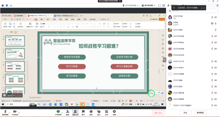 为深入学习习近平新时代中国特色社会主义思想和党的二十大精神,坚持“以生为本”,深化我校优良学风长效机制,全面提高人才培养质量,激发学生内在学习动力,进一步弘扬学院的优良学风,培养学生良好的学习习惯,营造浓厚的学习氛围,学院围绕“战胜学习困难”开展主题班会。