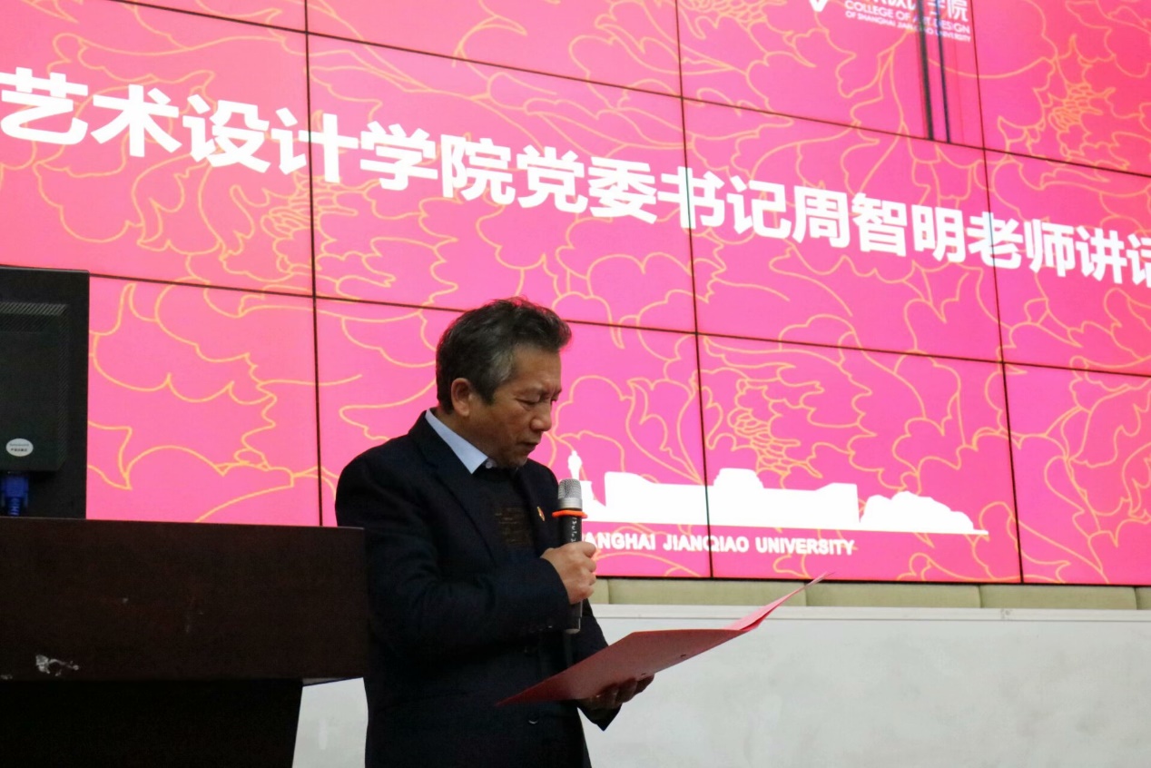 艺术设计学院党委书记周智明老师做总结致辞。他先对获奖师生表达祝贺,并对辛苦工作的全体师生表达慰问,并指出艺术设计学院要坚持立德树人根本任务,深化和强化学院教育教学工作,这是艺术设计学院举办的第三届学风节活动,将继续引领全院师生潜心育人,练就真本领,培养德智体美劳全面发展的社会主义建设者和接班人,同时也希冀全体同学树立良好的学习目标,践行知行合一;寄语全体教师要做“四有”好老师,做好四个“引路人”,做学生“为学、为事、为人”的大先生。