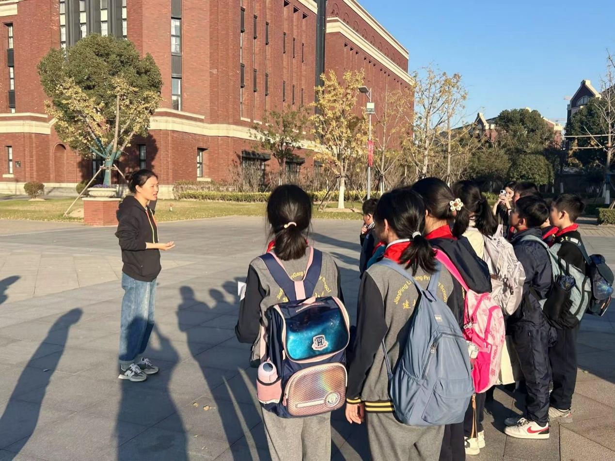 到达上海建桥学院,支部书记陆璐带领大家来到校雷锋像前并作欢迎致辞,希望小雏鹰们在实践活动中利用好红色资源,向雷锋学习,凝聚榜样力量,争做时代好少年,努力成长为德智体美劳全面发展的社会主义建设者和接班人。