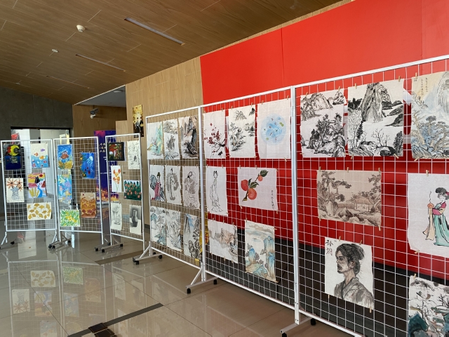 展演活动由两部分组成,一部分是学生的书法绘画作品,在大礼堂展厅展示,这些作品都是出自没有绘画书法基础,但选修了书法绘画课程后学习的作品。虽然显得稚嫩,青涩,但也是学生艺术兴趣与艺术能力的表现,是中国优秀传统文化的学习和传承,体现了我校开设艺术教育课程的初步成果。