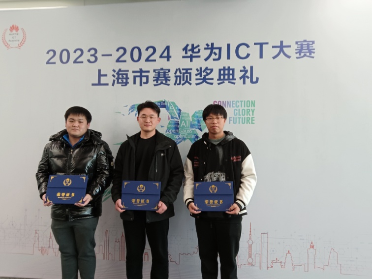 华为ICT大赛为全国普通高校大学生竞赛排行榜内竞赛项目之一。本次大赛在上海市教育委员会指导下,由华为技术有限公司主办,共30所高校1000余名学生参与本次市赛。比赛分为网络赛道、云赛道和计算赛道等3个赛道。我校共有4名学生获奖,其中一等奖2名,二等奖2名。黄运范、陈泽楷、赵紫豪将代表上海市本科组网络赛道出征国赛。