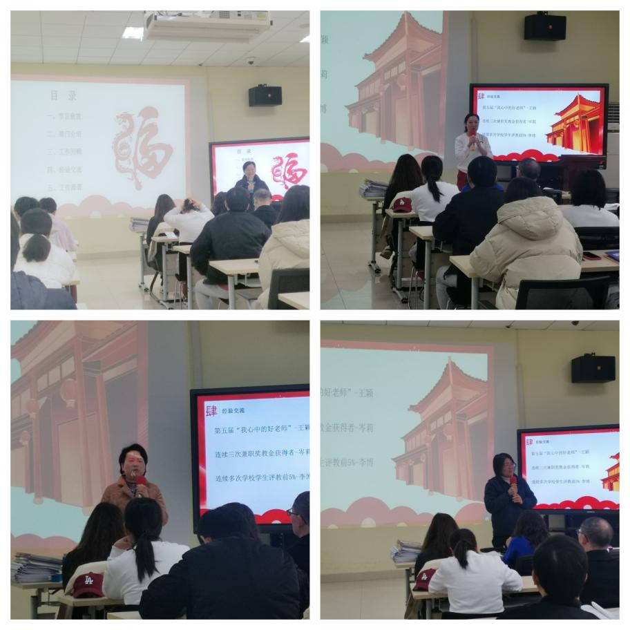 接着,孔主任向与会老师介绍了大英部的组织架构;随后,她从四方面对上个学期的工作进行了回顾和总结,包括期末考试情况,2023年12月CET-4考试情况,师、生比赛获奖以及寒假的工作;接下来,第五届“我心中的好老师”王颖老师、兼职奖教金二等奖获得者岑莉老师以及学生评教分数较高的李博老师就如何提高学生学习积极性和效果分享了经验和心得;最后,孔主任对新学期的工作进行了部署,要求围绕“2024年6月CET-4考试”这个中心,狠抓第一课堂、考核第二课堂、有序推进竞赛活动。