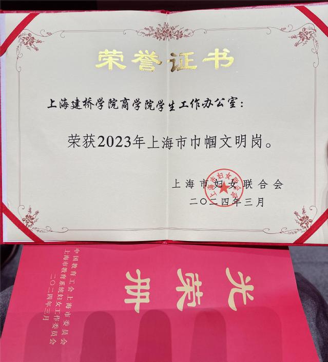 近日,2023年上海市巾帼文明岗先进集体评选公布结果,上海建桥学院商学院学生工作部荣获“上海巾帼文明岗”荣誉称号。