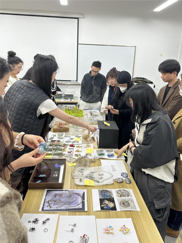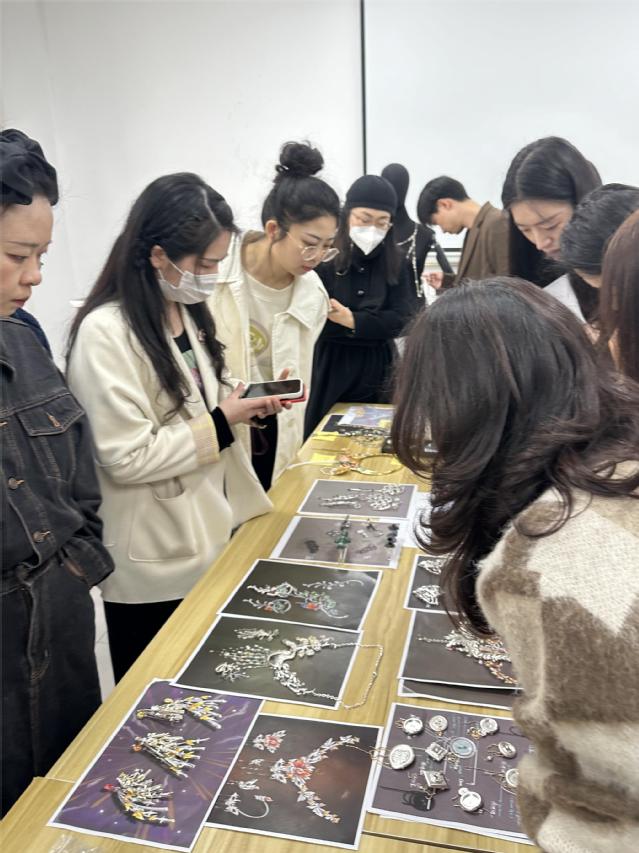 预选优秀毕业设计作品不仅仅是单一的激励同学们追求创新设计,也是对珠宝首饰产品制作工艺的锤炼。现场同学们带来了自己辛苦创作的实物作品,指导老师分别以小组形式进行了一一点评和讨论筛选,点评过程中及时发现问题,及时与学生反馈、讨论,要求学生对其后期优化,为保证作品在最后展览中达到最佳效果。通过此次优秀毕业设计作品的预选更加及时的跟进作品完成度,主动发现学生实物作品中遇到的难题,迅速的提出解决方案,有效的保证作品的最终实物效果与设计的统一性。