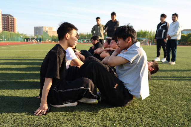 首次训练以测试入伍积极分子体能状况、退役学生介绍训练科目规范性动作为主,在学院退役大学生协会的组织安排下,学生们展现出极高的热情和良好的团队精神。