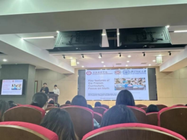 4月23日,教育学院邀请到现任北京师范大学教育学部讲师、硕士生导师、法国里昂高师博士,北京师范大学数学科学学院博士后王重洋老师为学生们做讲座。老师通过全英文ppt授课,从几个结构性概念出发为同学们分析法国当前数学教育现状。