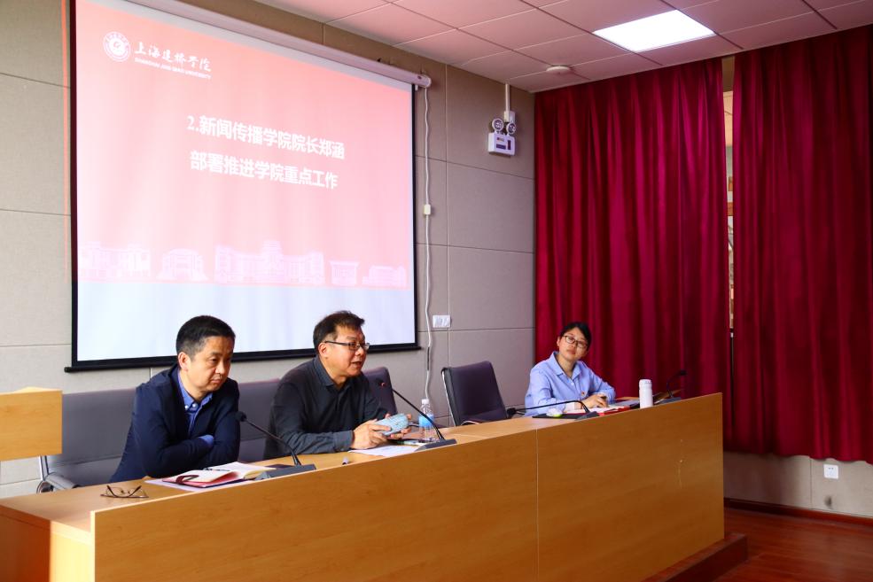 接着,郑涵院长总结了近期的学院工作,对各系部取得的各类成果表示了肯定。同时指出各系部继续加强师资队伍建设,继续推进质量建设,优化师资结构。加强教学内涵建设,提高教学质量,以专业平台搭建促教学成果转化。针对2025年审核评估、2026年申报新闻与传播硕士点工作的要求,立足学院自身条件,各系部专业提升师资队伍层次、推动内涵项目建设、提升科研成果水平、拓展校企合作平台等方面引起高度重视,系统抓好贯彻落实,注重成果产出的品质和效益。拓展社会服务,推动学院就业。培养符合社会需求的新闻传播人才。