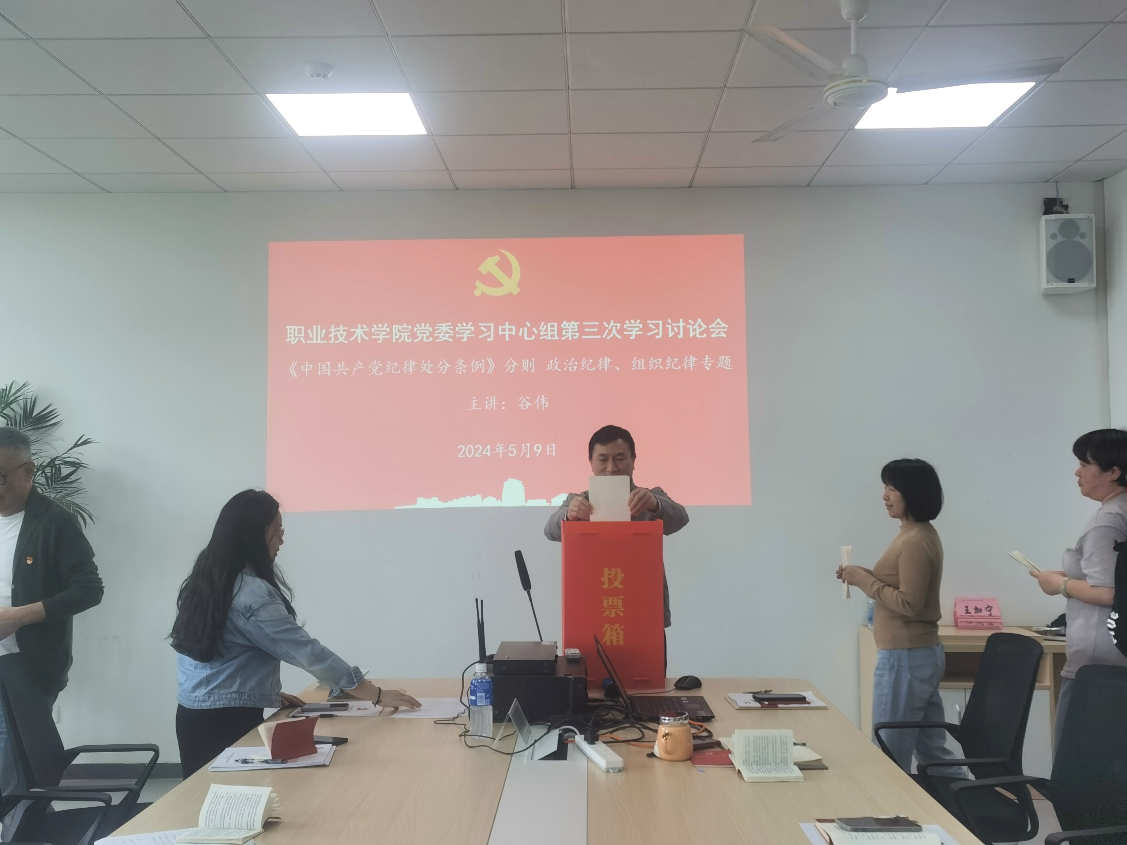 学习讨论会结束后,职业技术学院党委进行中共上海建桥学院第四届“两委”候选人第二轮投票。