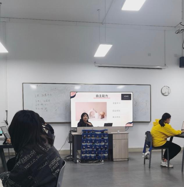 视觉传达设计B22-2的沈奕洁同学分享了她在专业学习方面的方法和经验,以及英语课程学习上的技巧和收获,并分享了自身学习压力较大时如何调整自己的心态等内容,帮助班级同学更好地投入到学业当中。